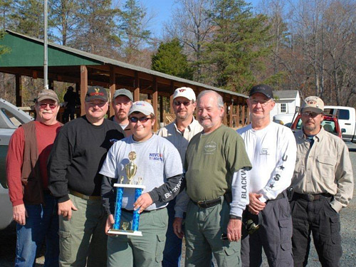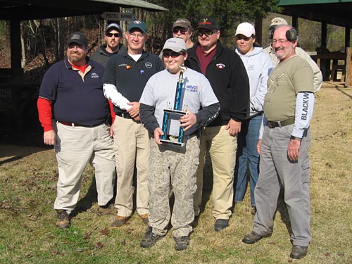 Sonny with his fellow Top Gun competitors and his trophy at Rivanna Rifle and Pistol Club in Charlottesville, Va. in November 2010.
