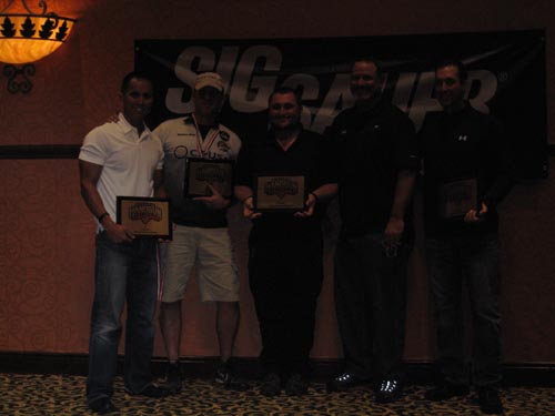Sonny with his fellow award recipients J.J. Racaza, Matt Mink, Rob Leatham and Dave Sevigny at the 2013 USPSA Production Nationals.