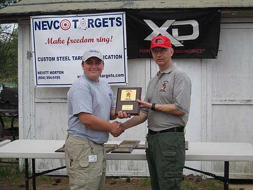 Sonny receiving the Most Accurate award from IDPA Committee Chairman Dave White at the Commonwealth Cup 2008 for dropping only 15 points for the entire match.