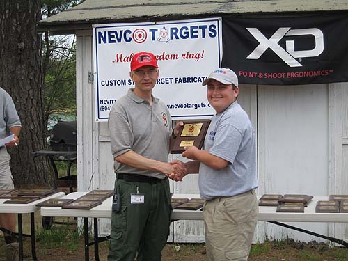 Sonny receiving the High Junior award at the 2008 Maryland State IDPA Championship.
